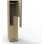 Melamine lockers blend into commercial or educational environments with a choice of natural oak or white finish, with black rigid edging and air vents to doors.