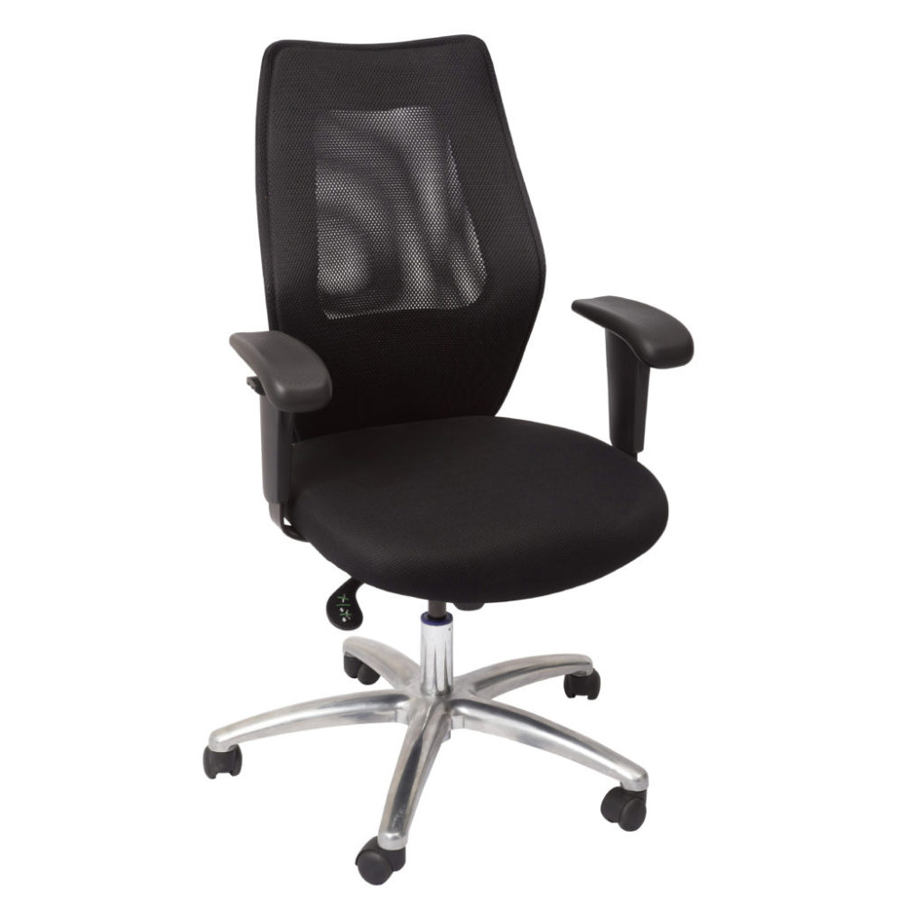 Medium mesh back desk chair. Comes with infinite tilt lock allowing setting of multiple back positions, a polished aluminium base and adjustable arms.