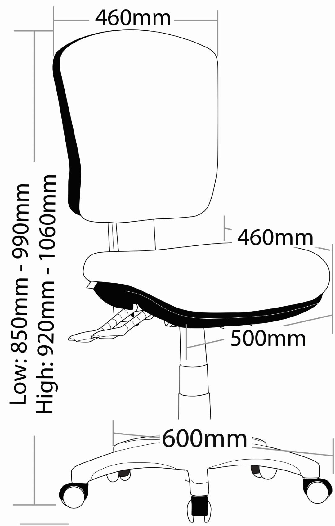 - Adjustable back height (ratchet)