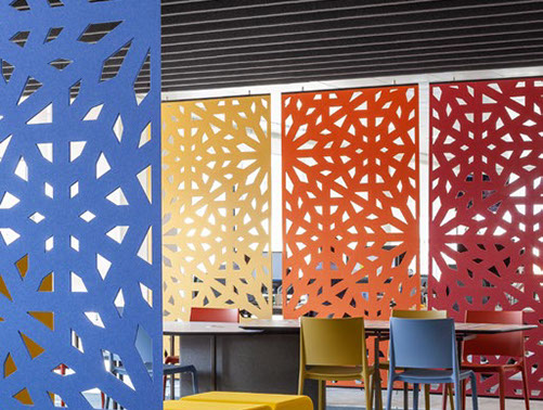 This allows light and line of sight to penetrate through, leaving the feeling of an open space while creating spatial privacy.