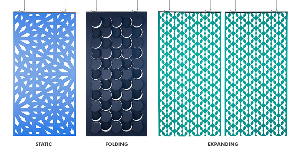 Open plan environments never need to feel overwhelming as we bring you our most stylish and forward thinking solution to create privacy. Cascade™, just like its name suggests, is a collection of acoustic hanging screens that simply fall from the ceiling in unique patterns designed with your privacy in mind.