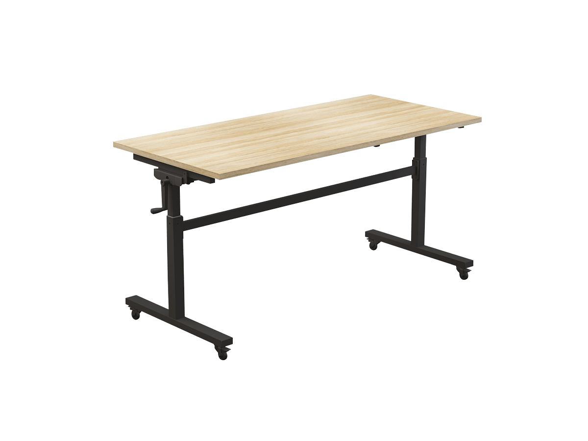 The Axis Height adjust flip table system comes with locking castors for an excellent mobile table solution. Suits 1500mm and 1800mm length worktops. Height adjustable by winder handle from 725mm – 1025mm.