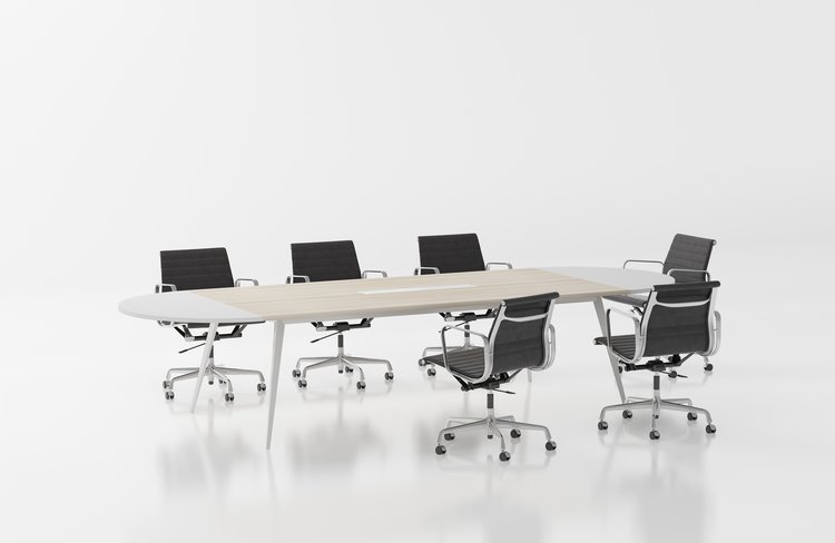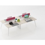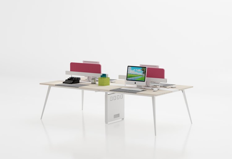 - Uniquely shaped legs and two-colour desk top creates an interesting office element