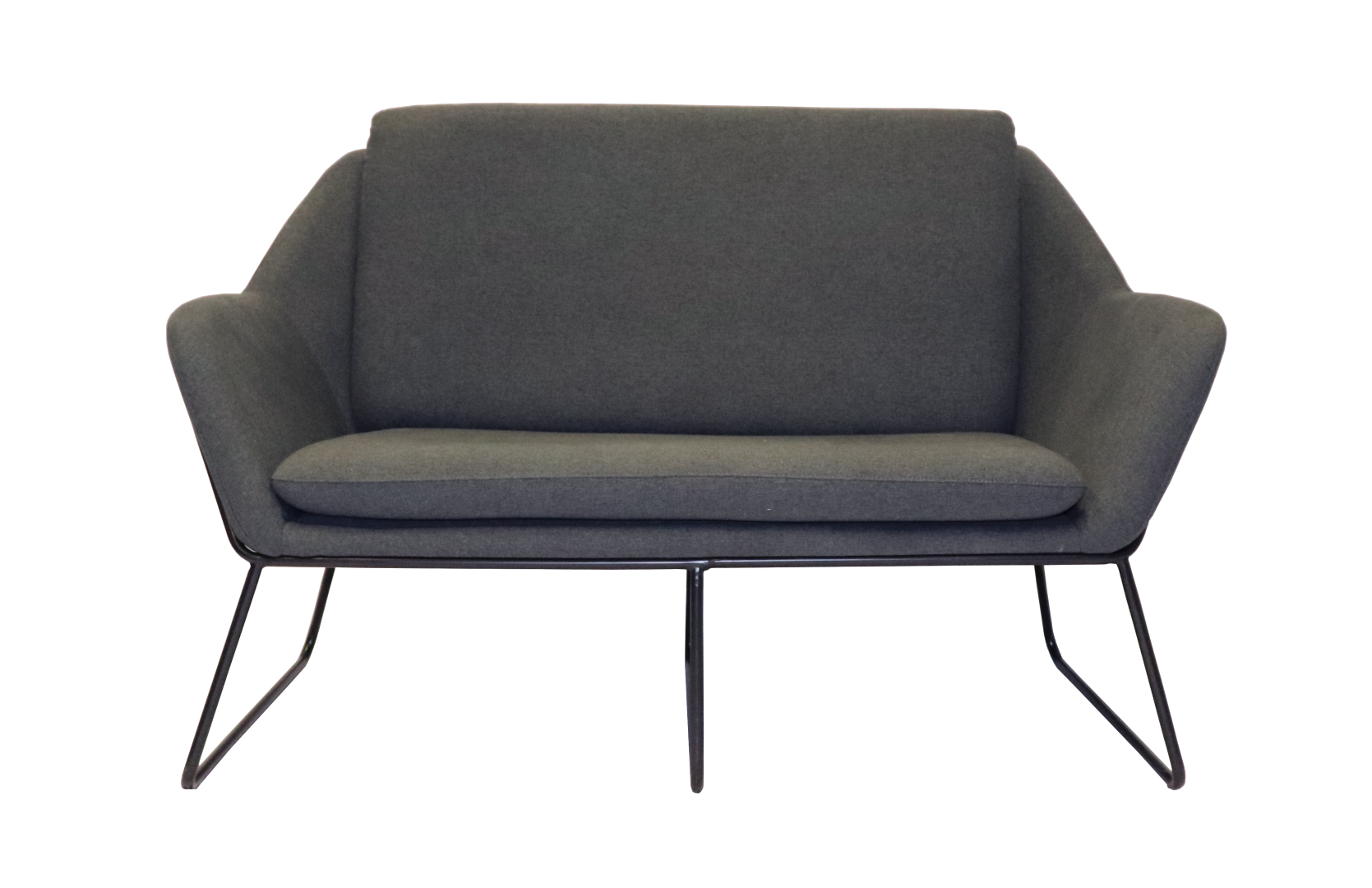 Two seater lounge arm chair, makes a great impression in the reception area. Upholstered in light blue or charcoal ash fabric, with a sturdy black solid tube frame with rubber feet.