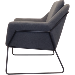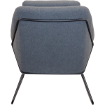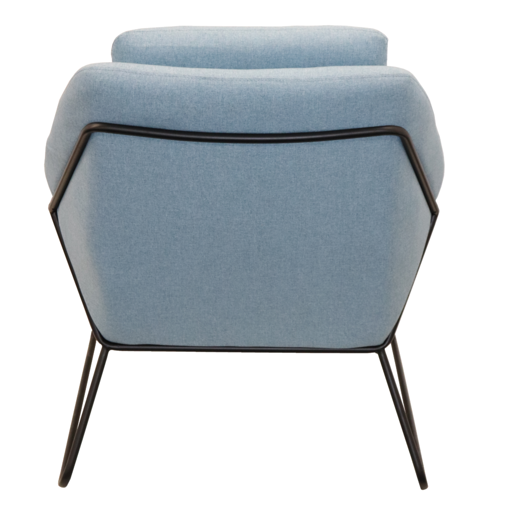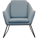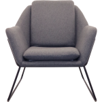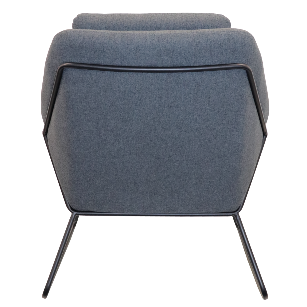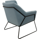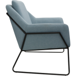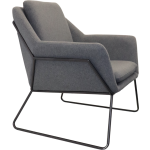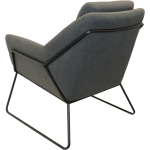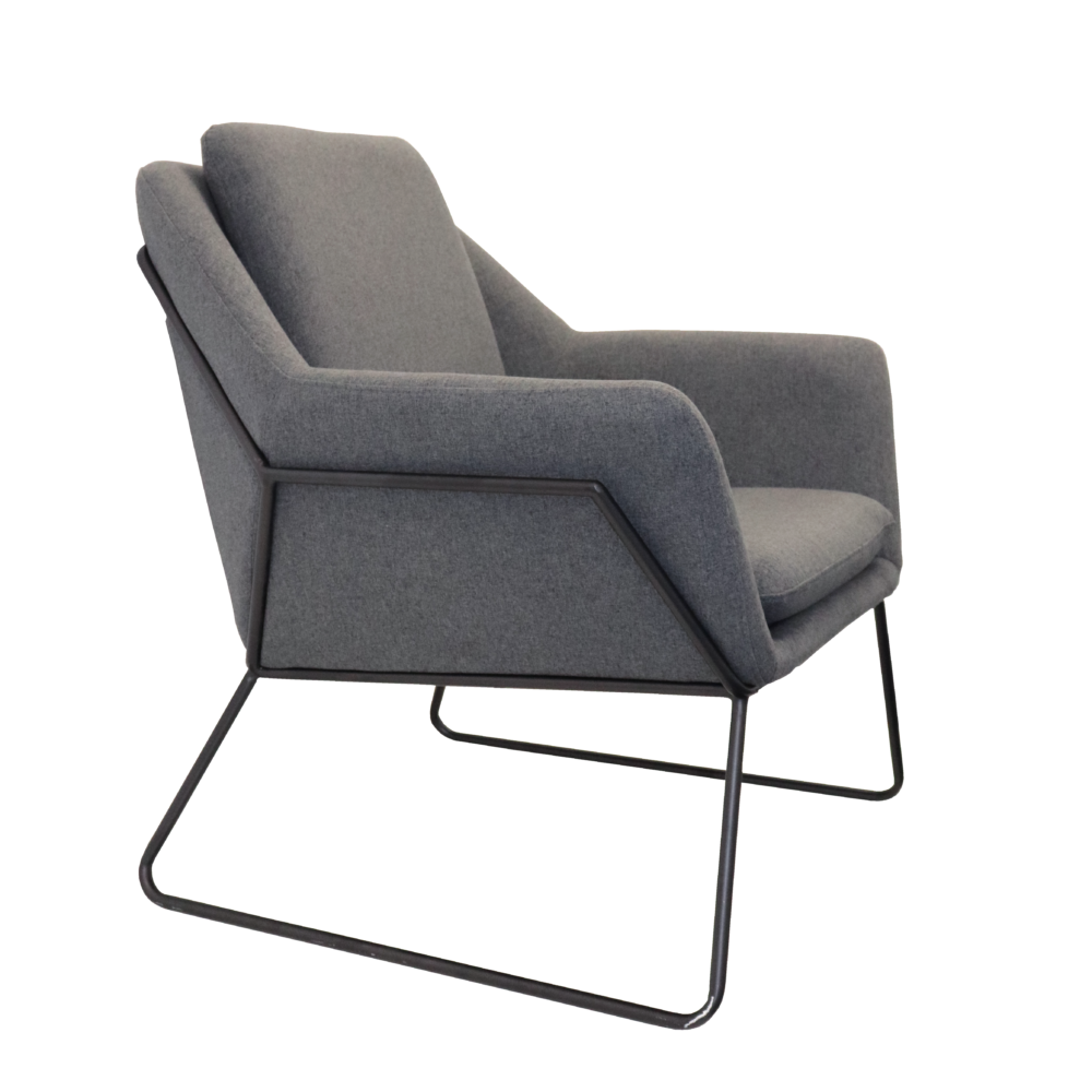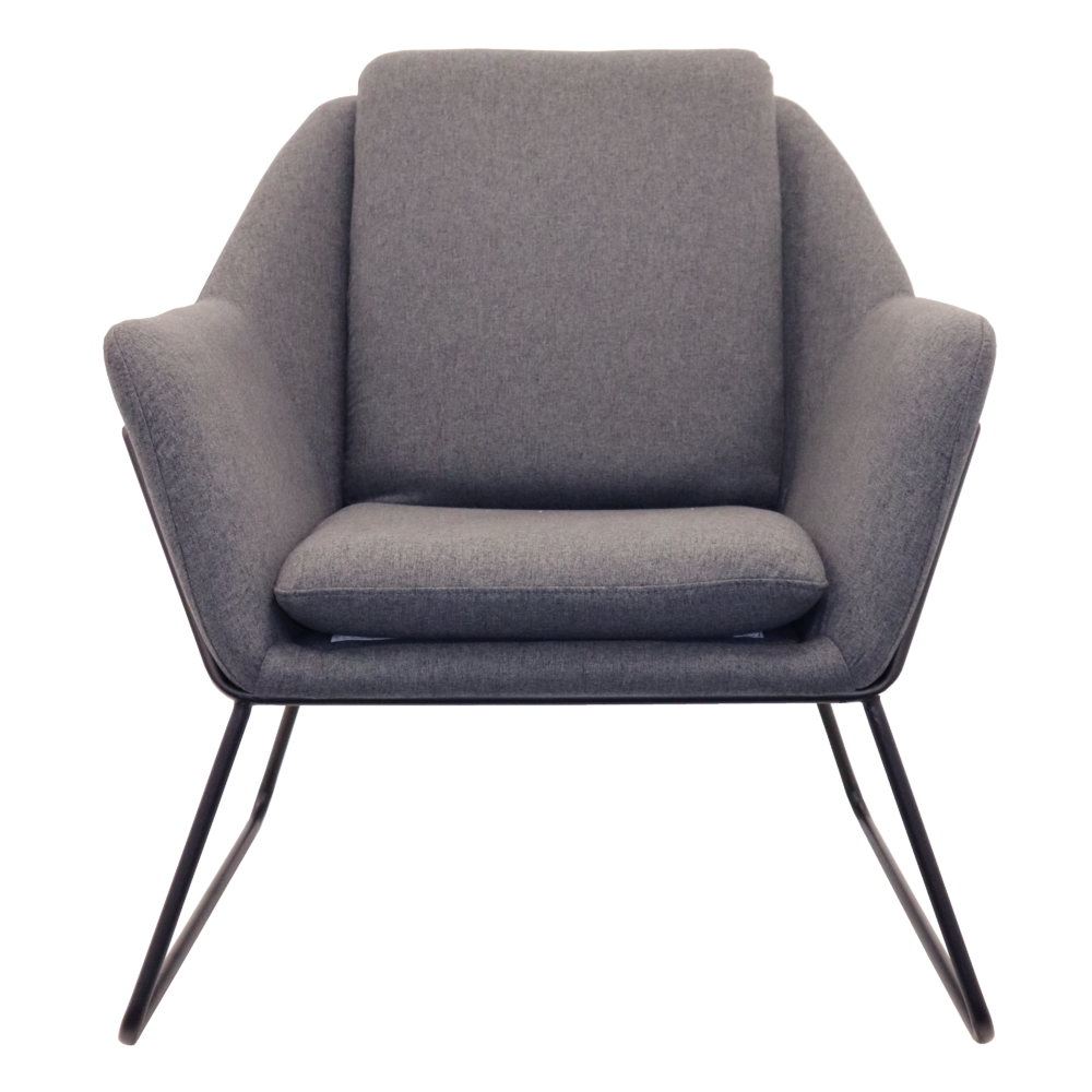 Lounge arm chair suitable for reception or break out areas. Upholstered in light blue or charcoal ash fabric, with a sturdy black solid tube frame with rubber feet.