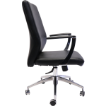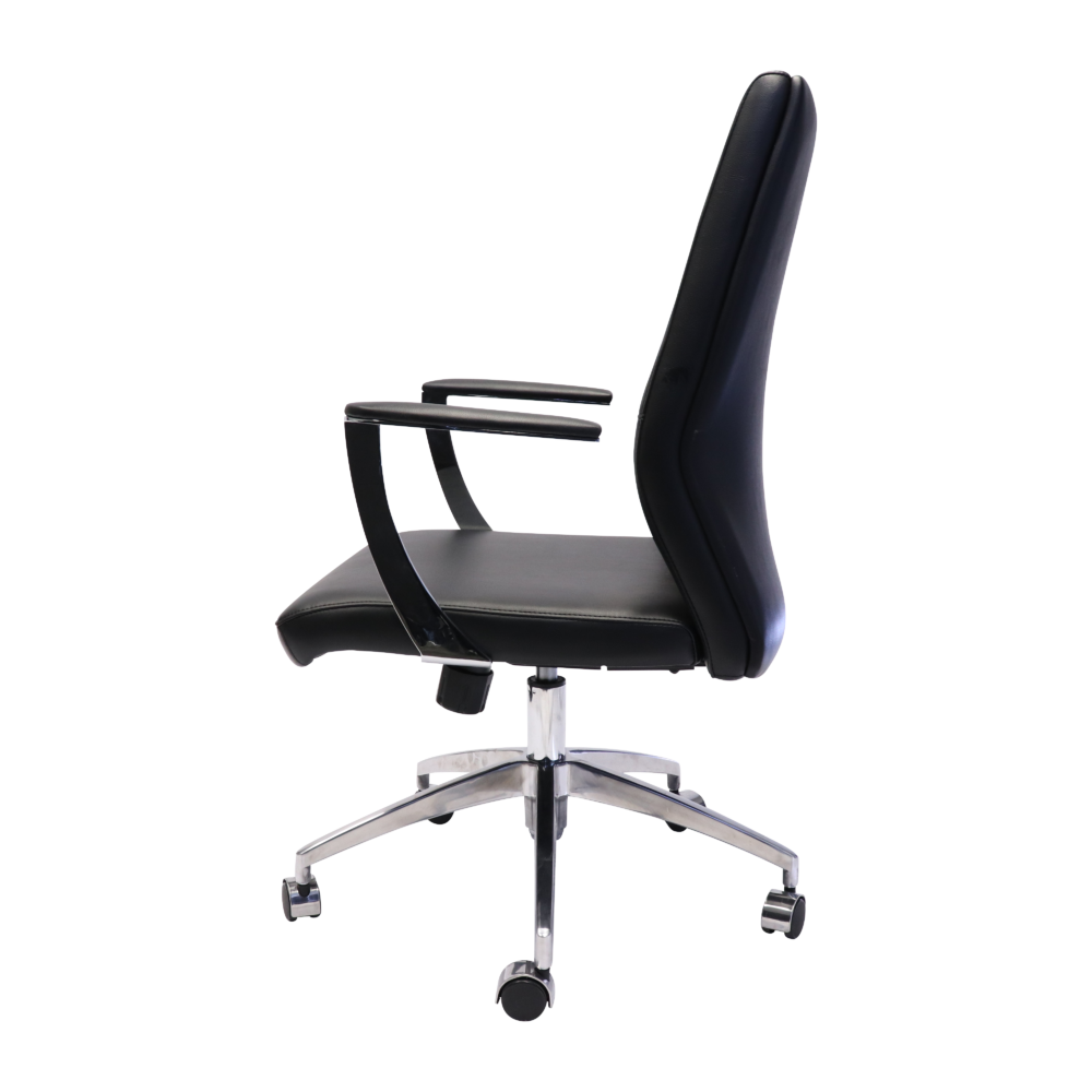 Rapidline slimline executive medium back chair with a 3 position lock mechanism to adjust seating angle, upholstered arm pads and polished aluminium arms and base.