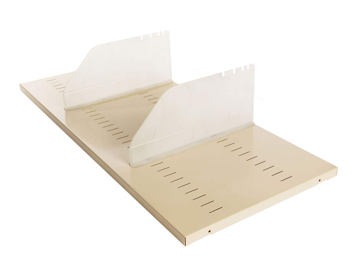 Each divider locks into dual slots that run parallel along each shelf and can be removed or repositioned as required.