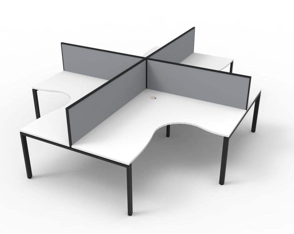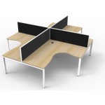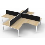 White or oak tops, and black or white frames create a modern, clean look to your fit out. Configure multiple corner workstations together to create pods with or without screens for large workspaces.