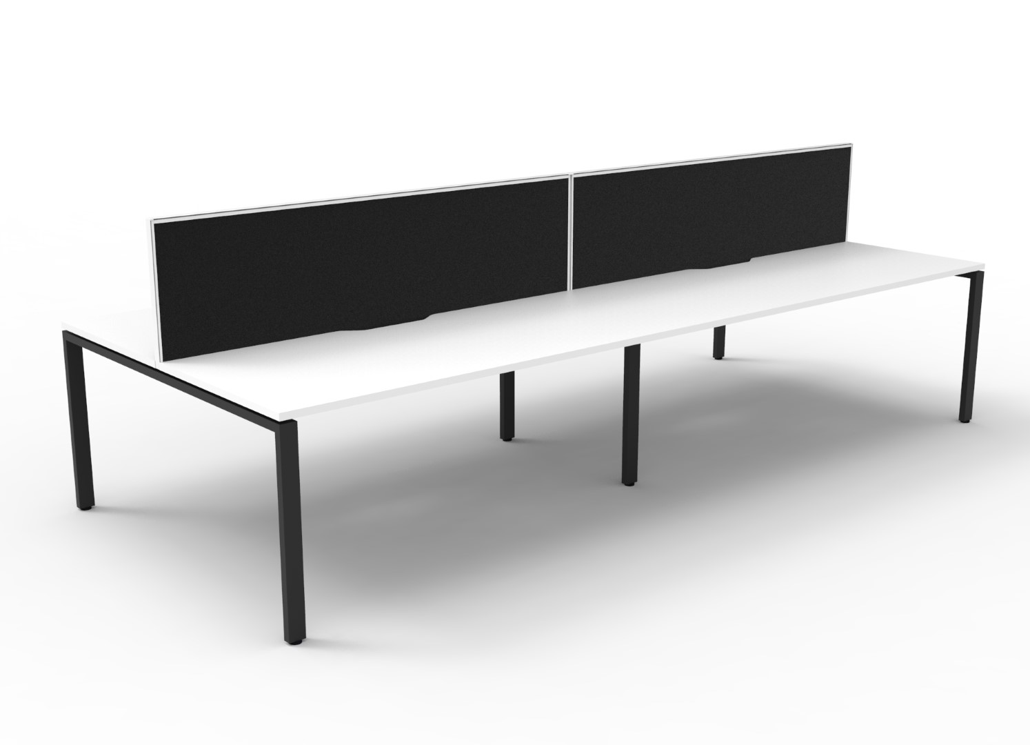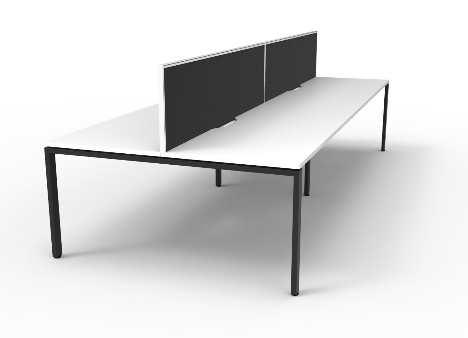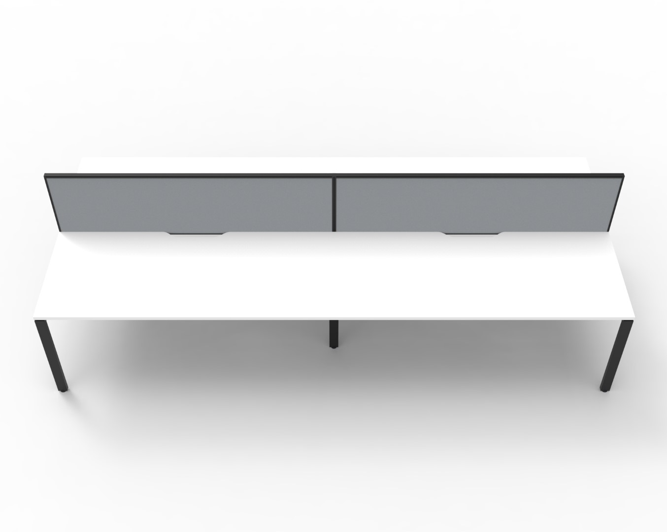 3600mm W x 1530mm D x 1200mm H (Overall), 1800mm W x 750mm D x 730mm H (Per User), 60mm x 30mm Profile Leg Underframe. 495mm H x 30mm T Pinnable Privacy Screen Upholstered In Fabric