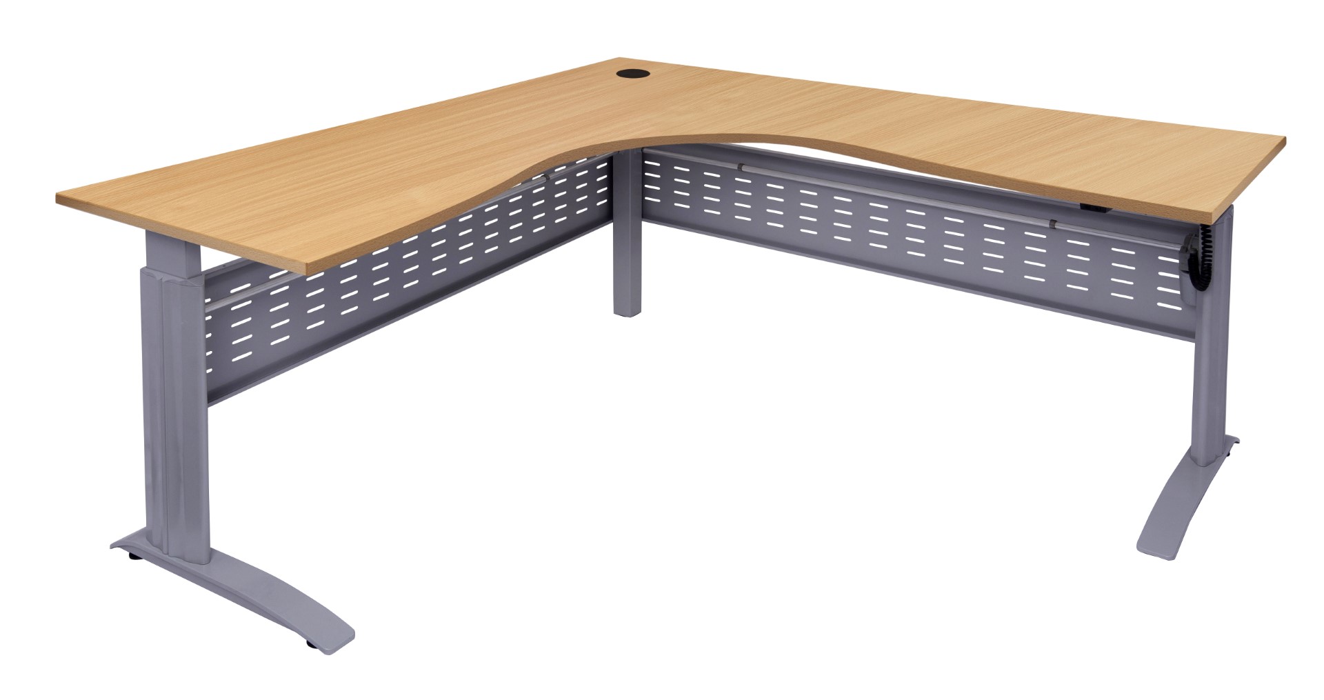 Electric Sit To Stand Height Adjustable Corner Workstation1500mm x 1500mm x 700mm D – Beech, Sliver