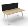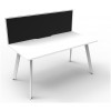 1800mm W x 780mm D x 730mm H ( Overall ), 1200mm W x 750mm D x 730mm H Per User | 60mm x 30mm Splayed Leg | 495mm H x 30mm T Pinnable Fabric Privacy Screen|Adjustable Levelling Feet|Dual Cross Bar For Added Stability
