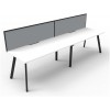 3600mm W x 780mm D x 730mm H ( Overall ), 1200mm W x 750mm D x 730mm H Per User | 60mm x 30mm Splayed Leg | 495mm H x 30mm T Pinnable Fabric Privacy Screen|Adjustable Levelling Feet|Dual Cross Bar For Added Stability