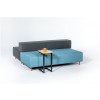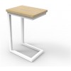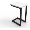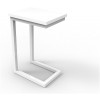 The Eternity side table features a powdercoat cantilever frame in black or white that slides conveniently under lounges or sofas.