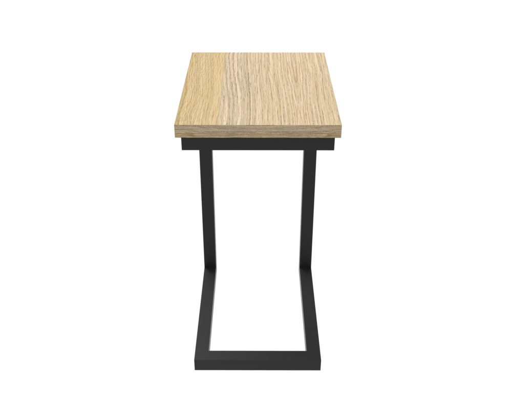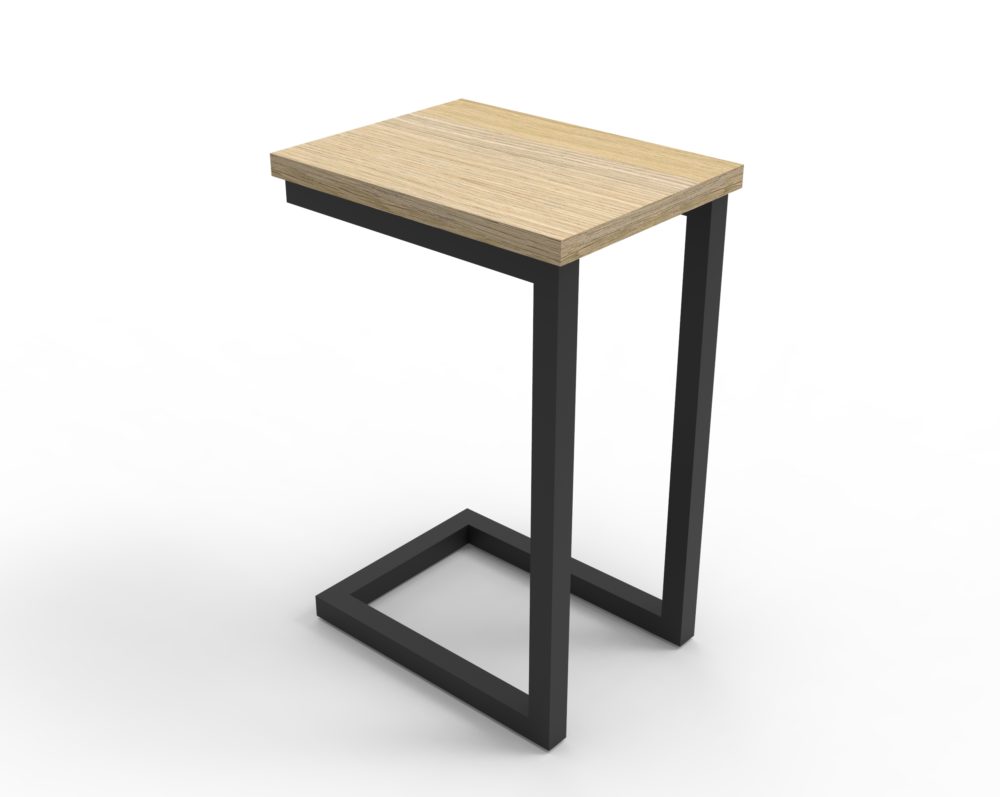 The Eternity side table features a powdercoat cantilever frame in black or white that slides conveniently under lounges or sofas.