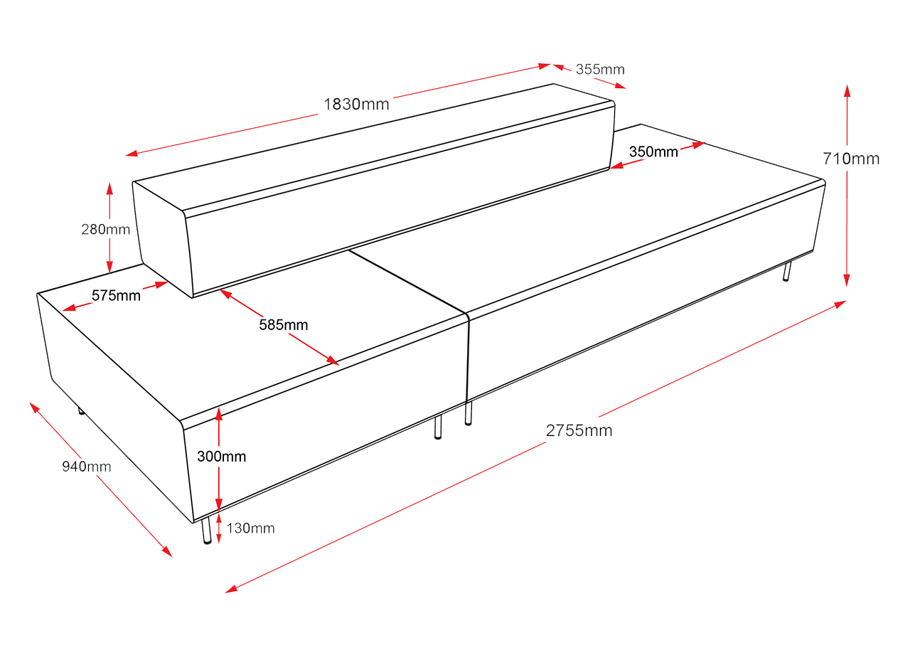 Flexi Lounge 5 – Stretch – 2755mm W x 940mm D x 710mm H