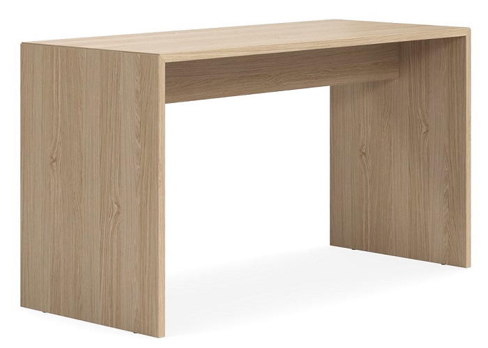 A Melamine Bench Table with birds-mouth joins, 25mm thickness and modesty panel for added strength and stability.