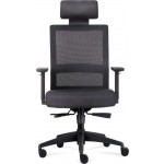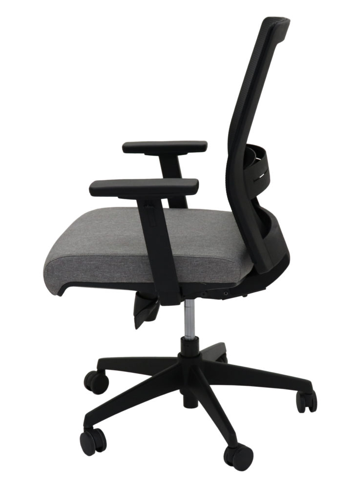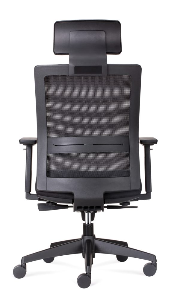 High quality mesh task or executive arm chair. Synchronised back rest and seat allow for adjusting position to suit task, while seat slide and lumbar support the back and legs.