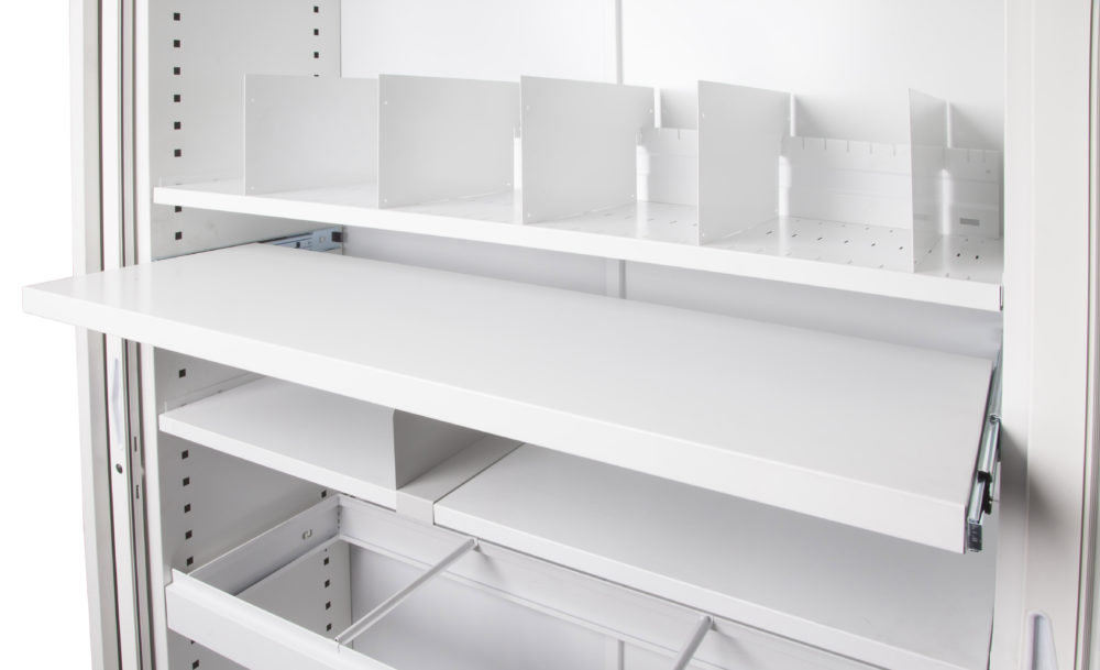 The pull out shelf allows you to sort files at the Tambour unit.