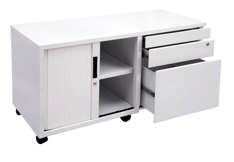 - 1 File Drawer, 2 Personal Drawers and Tambour Door Section with 1 Shelf
