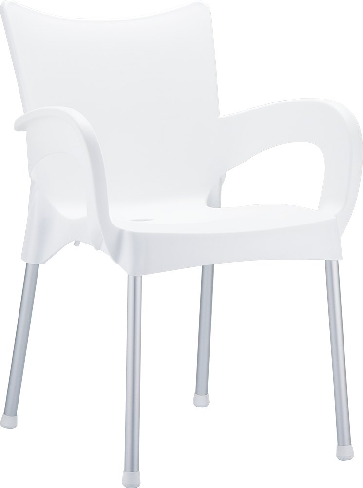 Stacking armchair with recyclable polypropylene seat and backrest and anodized aluminium legs. Diameter 25 mm. For indoor and outdoor use.