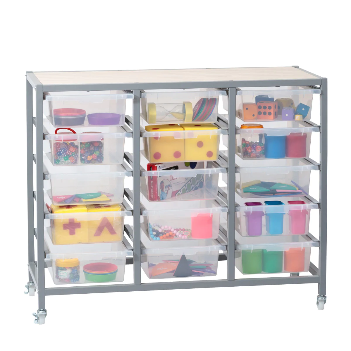 Our Numeracy Centre is the perfect way to store and organise your lesson resources. Included are clear tote trays to keep subject materials differentiated and visible. Ideal for implementing numeracy programmes such as TEN (Targeted Early Numeracy).