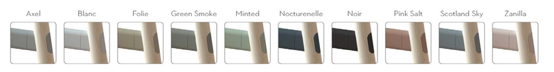 - Frame: Axel, Blanc, Folie, Green Smoke, Minted, Nocturenelle, Noir, Pink Salt, Scotland Sky, Zanilla, Copper Plated or Black Chrome