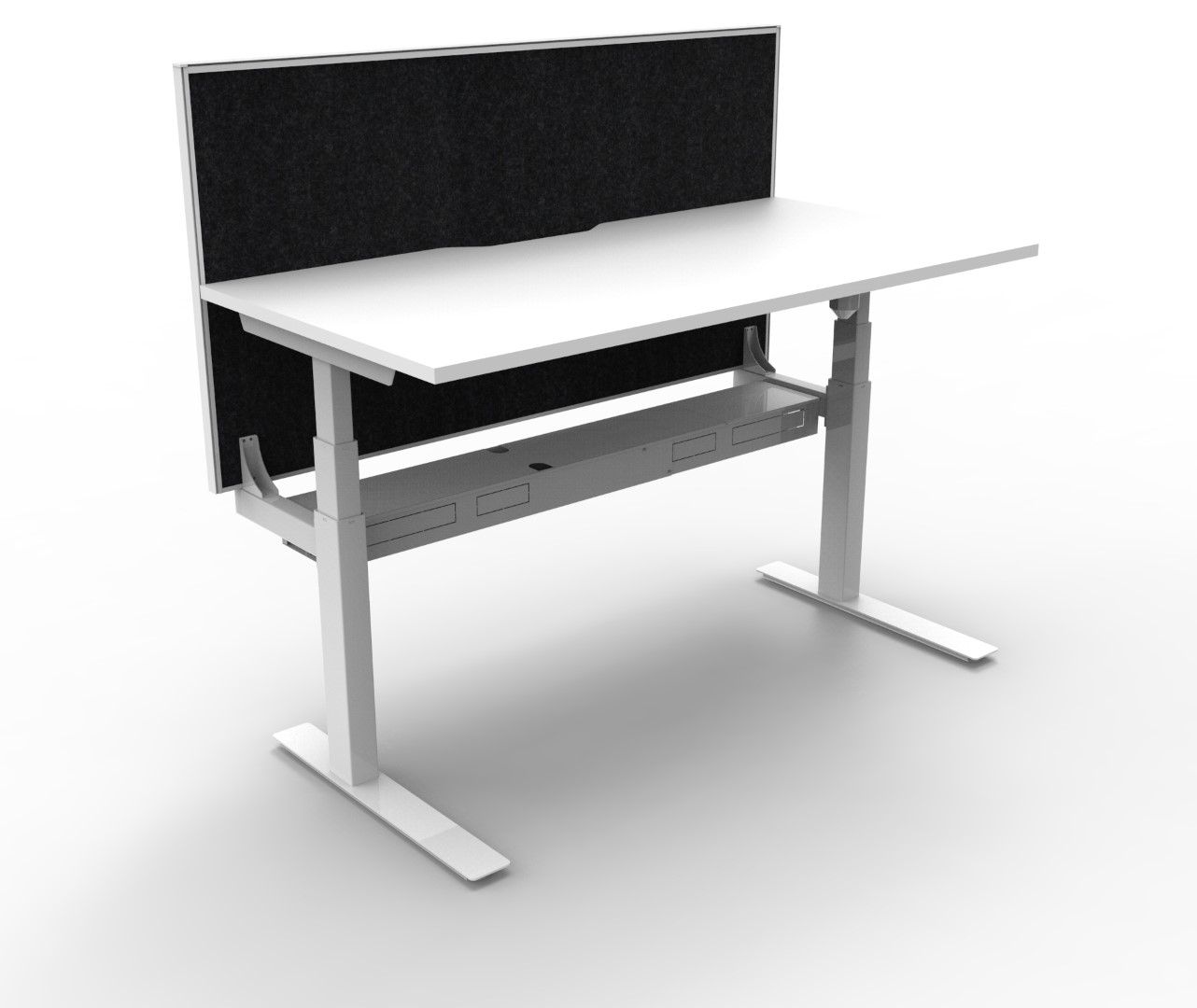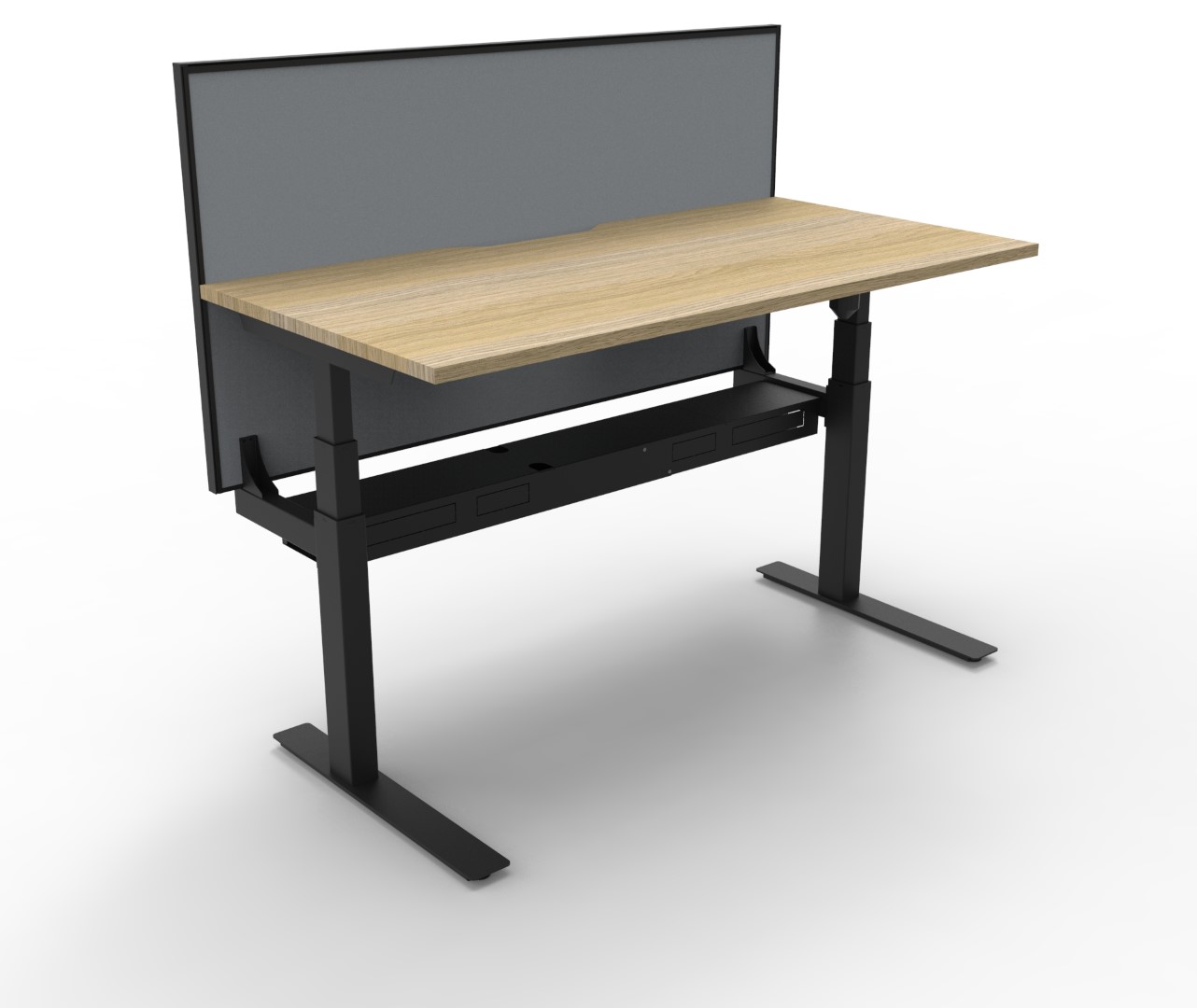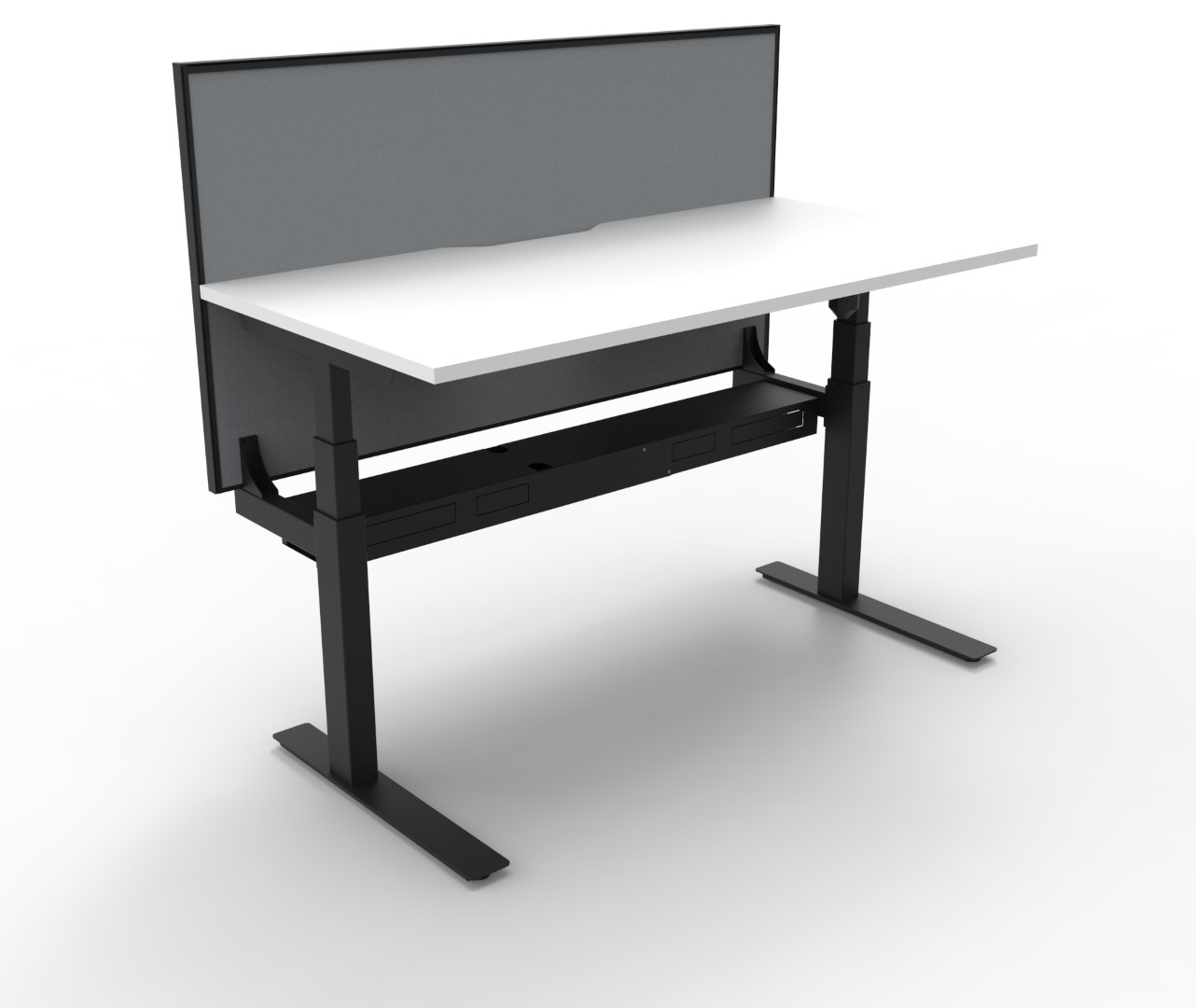 Paramount Single Sided Electric Height Adjustable Workstation With Screen – 25mm Thick Table Top With 50mm D Scallop