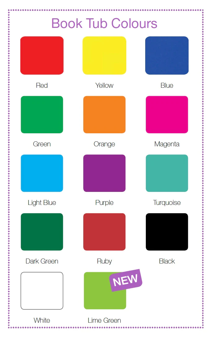 Our range of plastic book storage tubs are available in a range of vibrant colours to brighten your classroom, library, book storage area and office!