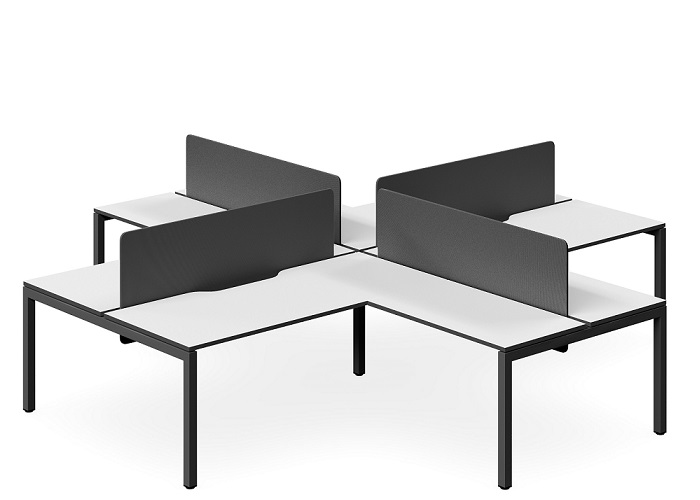 PLAZA BLACK 4 WAY DESK & RETURN OPTIC SCREEN