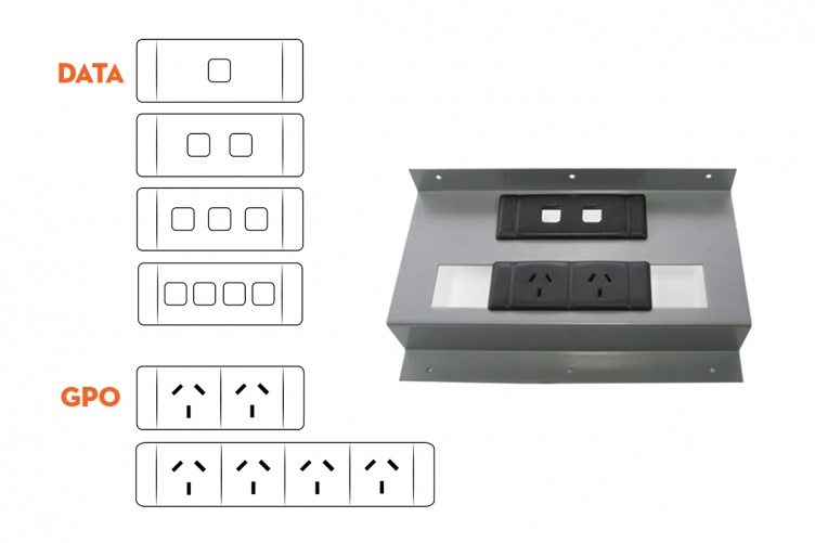 This convenient power and data bracket is specifically designed for cable protection when bringing power & data cables under the work surface. Offers significant installation benefits as no tools are required for thin or thick panel mounting. This speed of installation offers excellent labour savings and this bracket is compatible with all DDK workstations.