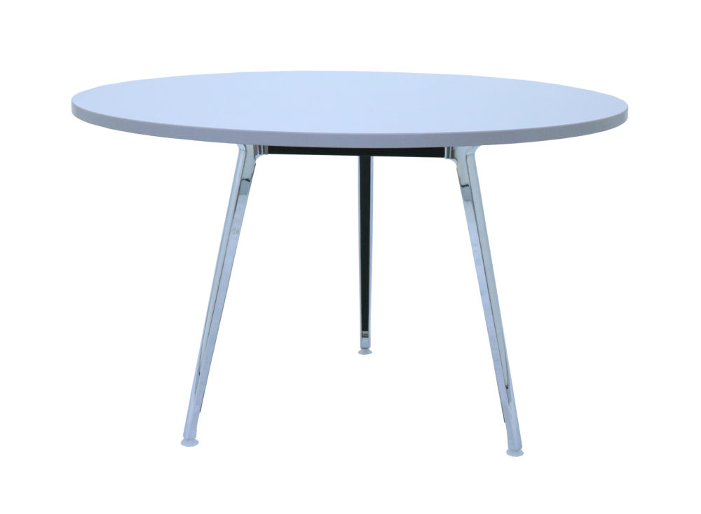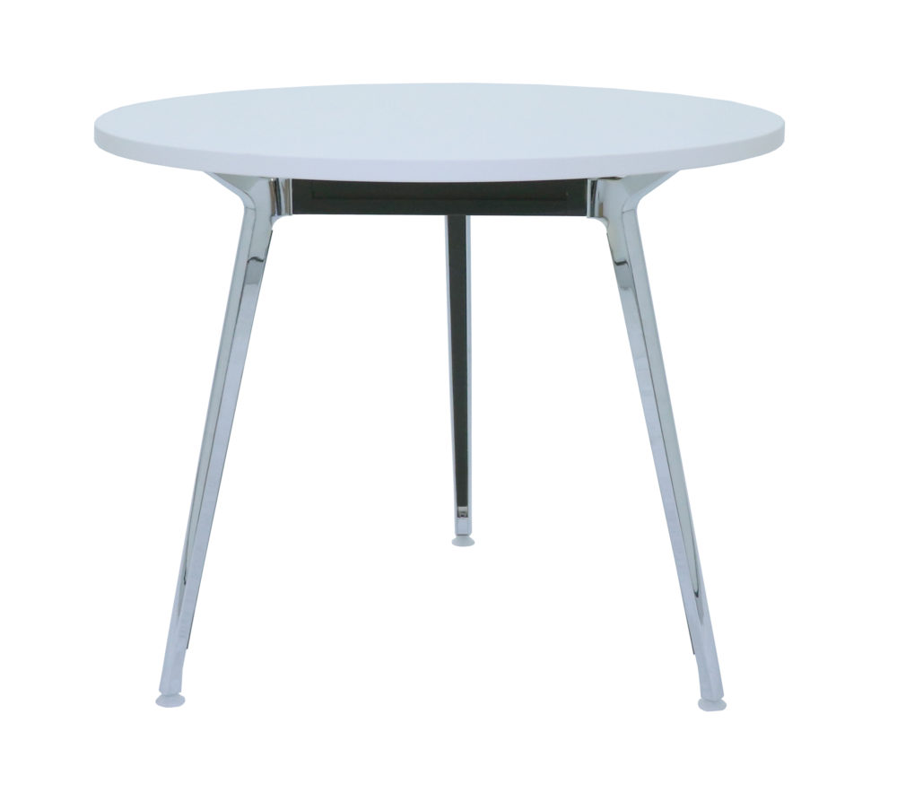 The Rapid Air meeting table is a modern, elegant round table with a floating top, black powder coated frame and polished aluminium legs with adjustable feet.