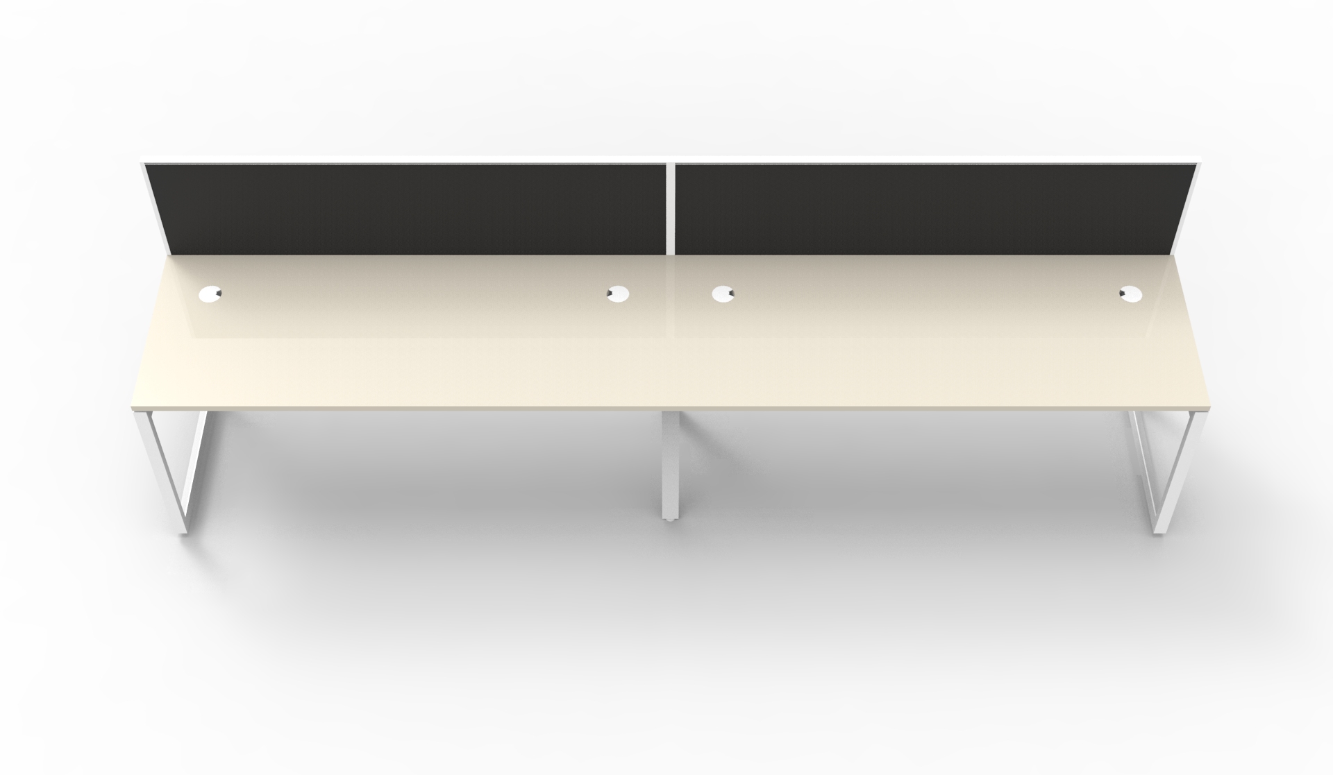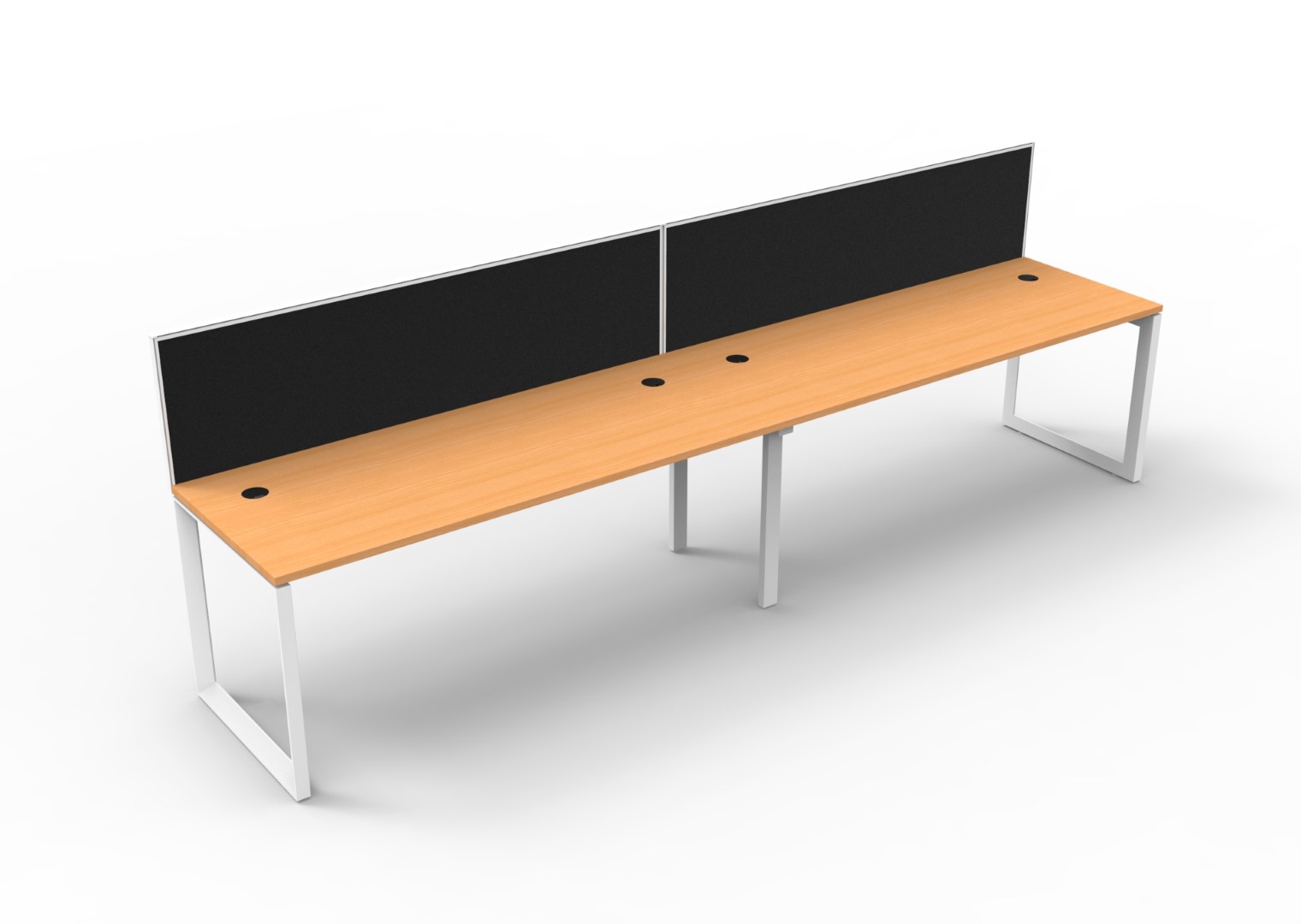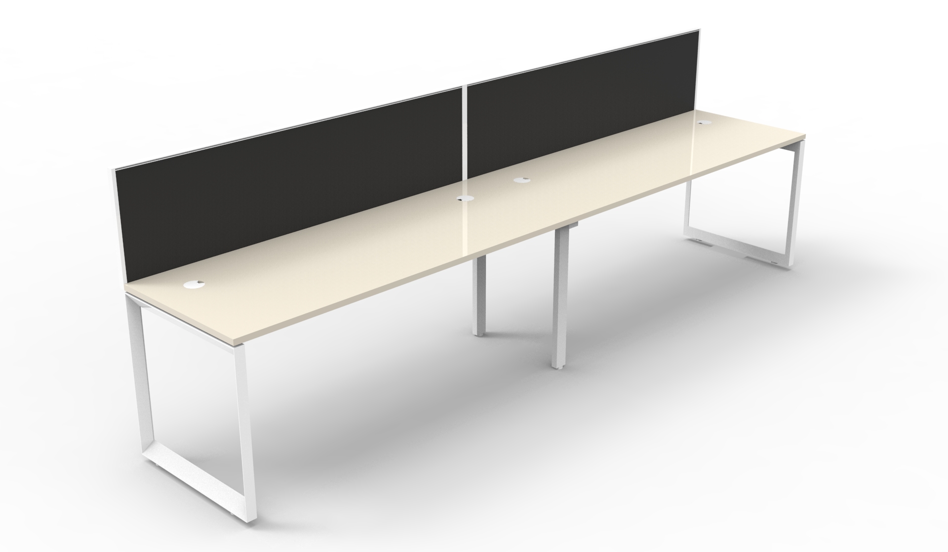 The bevelled edge loop leg finishes each workstation run with a premium look, and the matching dividing screen adds privacy and noise reduction to each workstation.