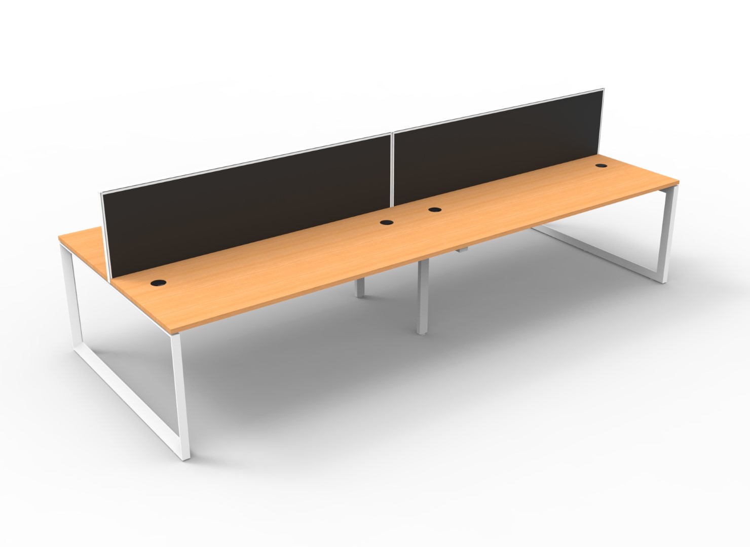 The bevelled edge loop leg finishes each workstation run with a premium look, and the matching dividing screen adds privacy and noise reduction to each workstation.