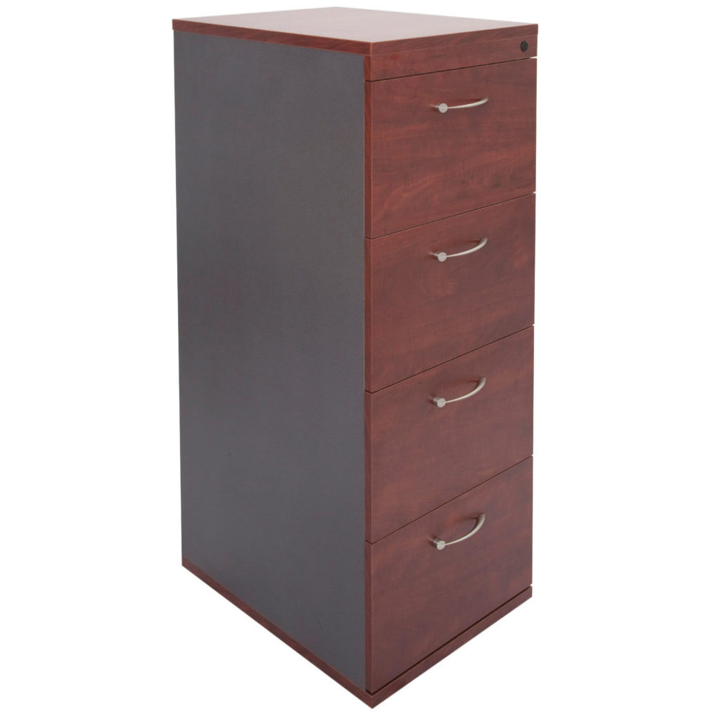 The 4 drawer filing cabinet comes with metal runners, takes foolscap files and is fully assembled.