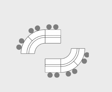 - 2 X Curve Ottoman with Low Back Long Edge & Castors