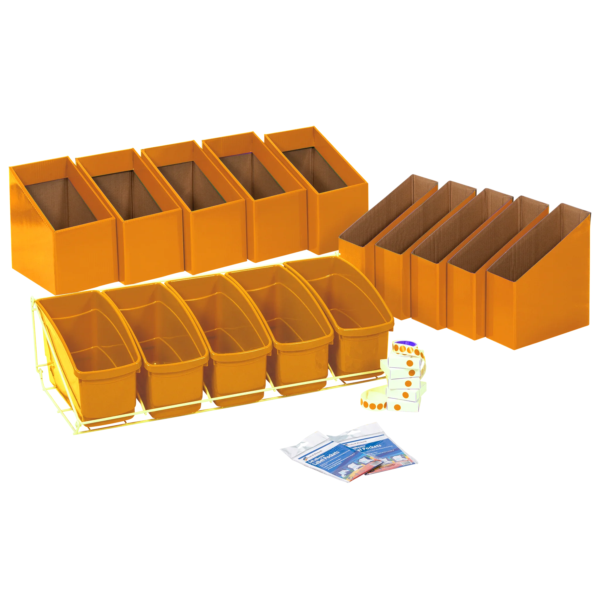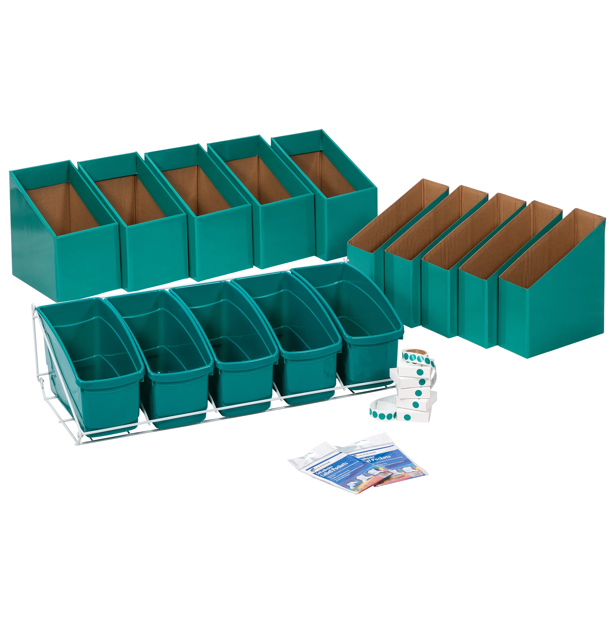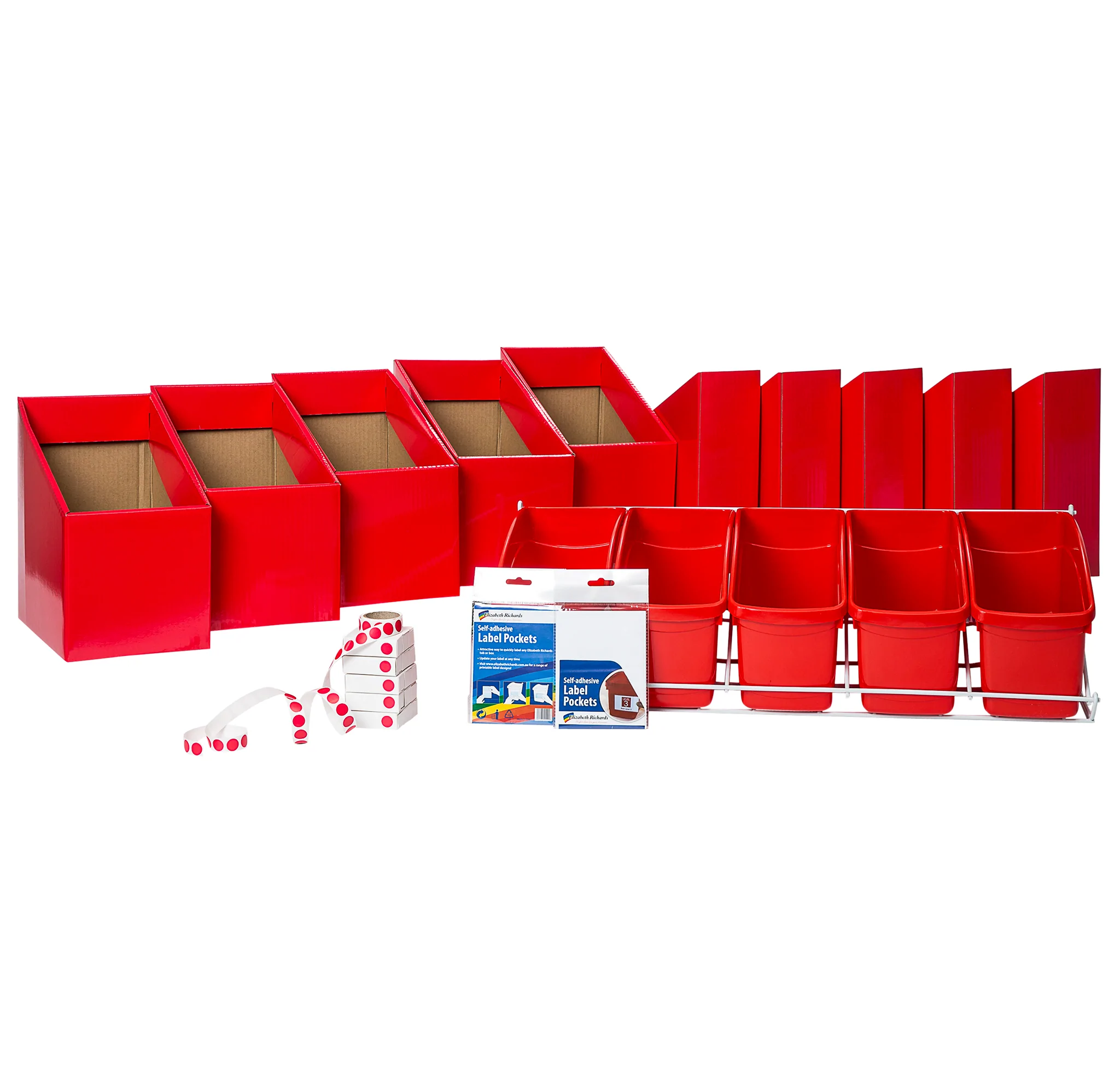 The Single Colour Classroom Pack includes our most popular book storage items. Each set contains 5 x Book Boxes, 5 x Magazine Boxes, 5 x Book Tubs and 5 x 14mm Book Dots, all in a single colour of your choice. Also included is our Book Tub Desk Caddy, making moving resources between work groups easy, and two packs of 10 Label Pockets for identifying the levels.