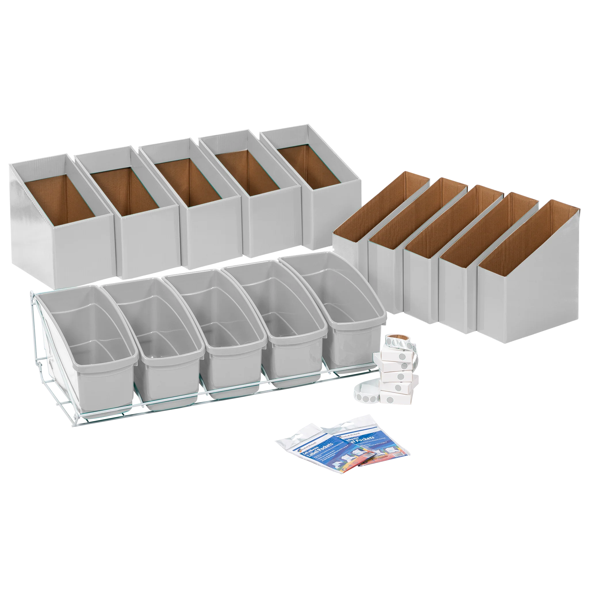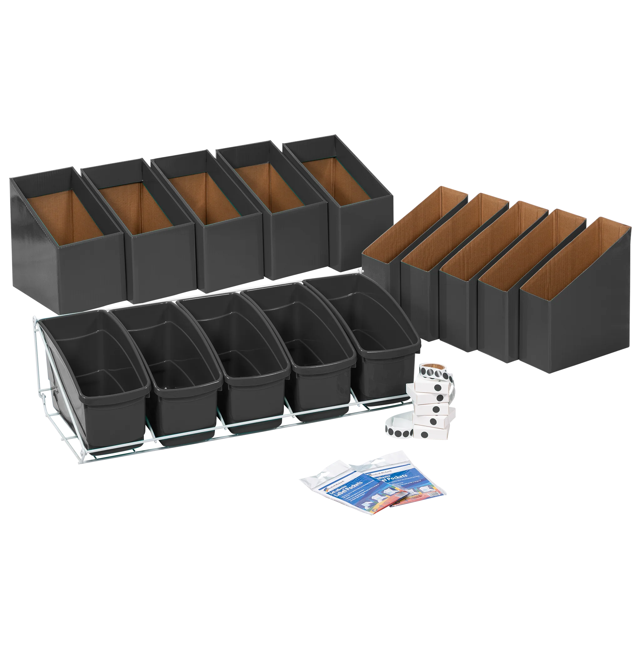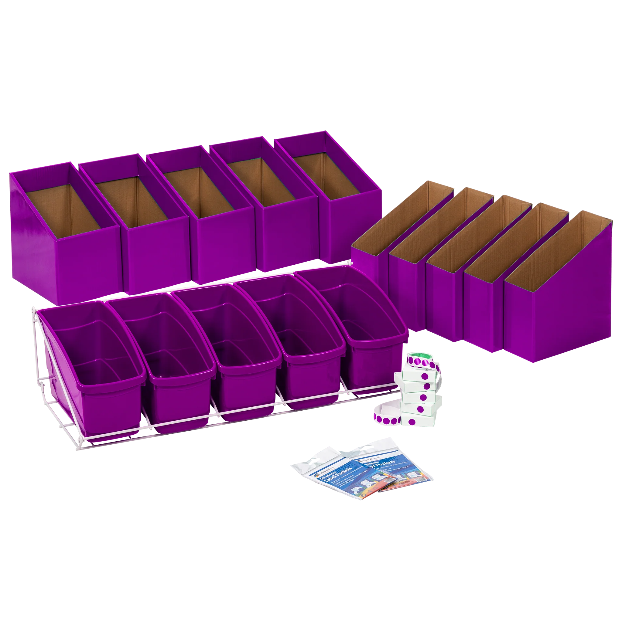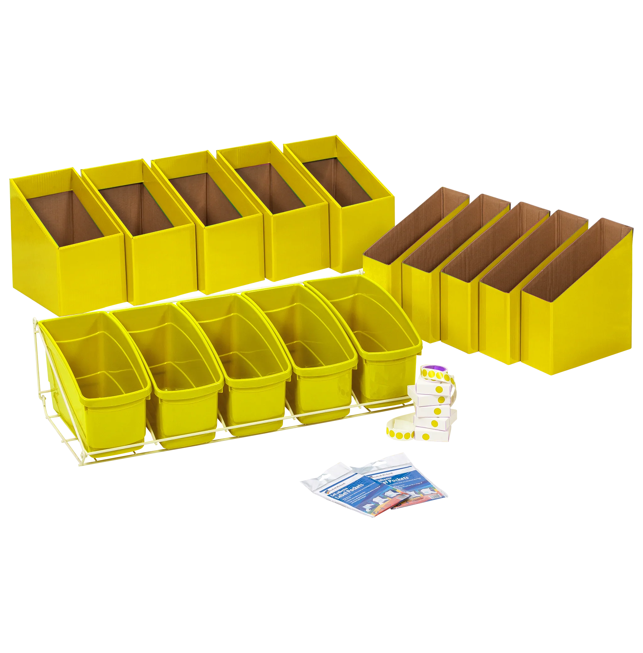 The Single Colour Classroom Pack includes our most popular book storage items. Each set contains 5 x Book Boxes, 5 x Magazine Boxes, 5 x Book Tubs and 5 x 14mm Book Dots, all in a single colour of your choice. Also included is our Book Tub Desk Caddy, making moving resources between work groups easy, and two packs of 10 Label Pockets for identifying the levels.