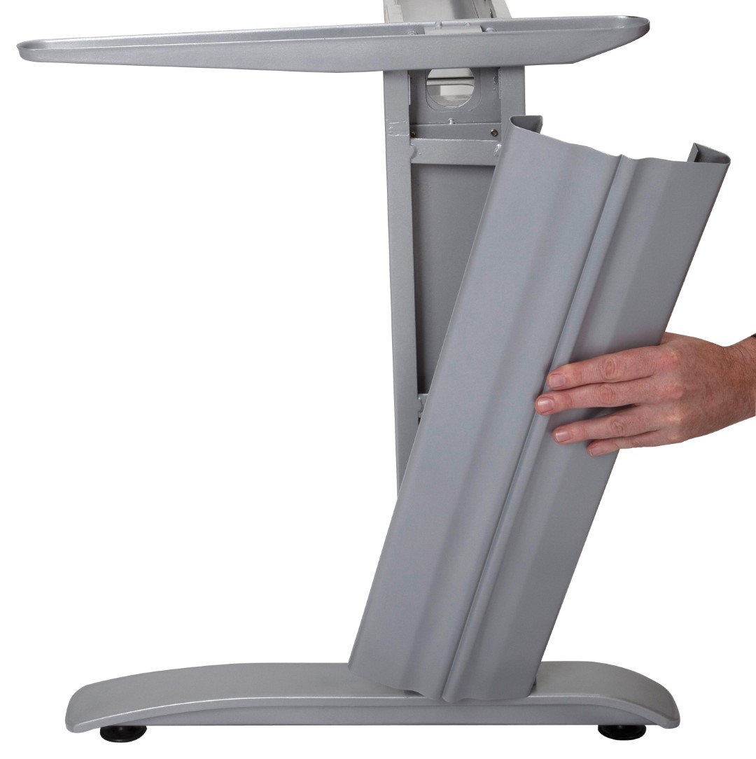 The Rapid Span leg has a solid top plate and adjustable feet. Wiring can be concealed and run down the inside of the leg.