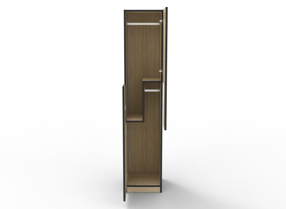 The Step door locker allows 2 hanging spaces in the one unit, saving valuable space.