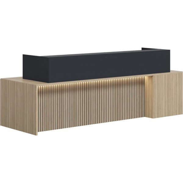 - Render reflects 3000 (W) size in Polytec Natural Oak and Laminex Absolute Matt Black Hob