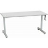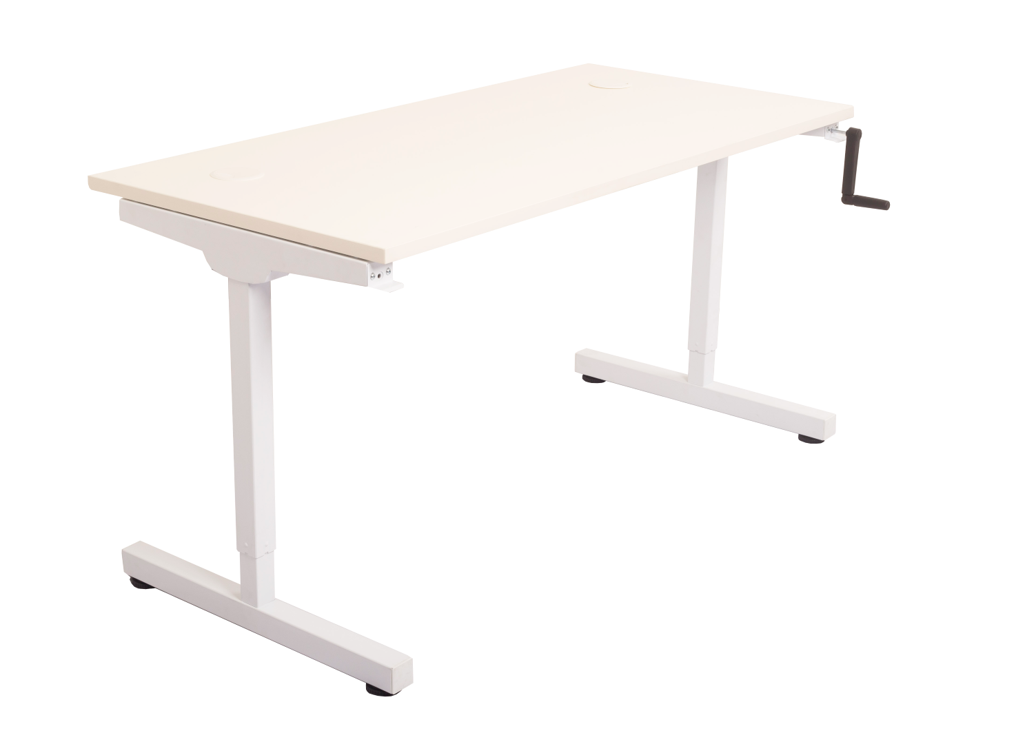 Robust height adjustable workstation with easy manual height adjustment via a fold away handle.