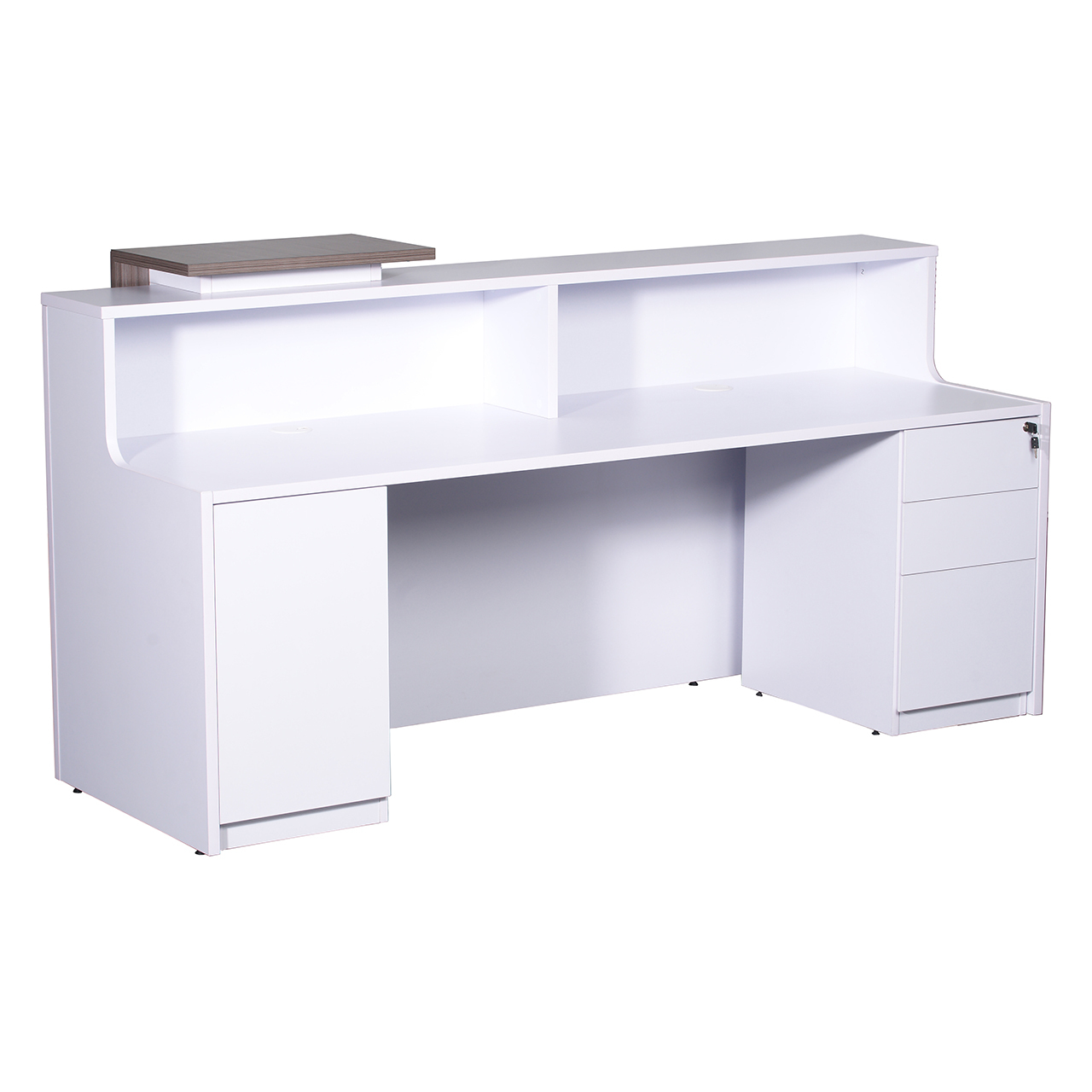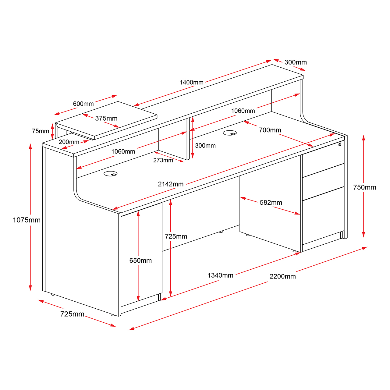 On the user side there is a built in 3 drawer pedestal and CPU and storage cupboard, with Chrome cable entry covers on the worktop.