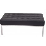 Add this ottoman to your Venus reception suite. Use as footstool or table. Button finish to black PU, easy clean upholstery. Stainless steel underframe and legs.
